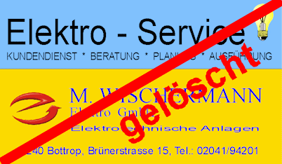 M.WISCHERMANN Elektro GmbH ** Brünerstrasse 15 ** 46240 Bottrop Telefon (0 20 41) 9 42 01